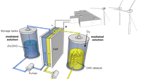 Flow batteries are promising candidates to address the needs of a grid-scale energy storage system for intermittent renewable energies because of the decoupling of power and energy. Flow batteries are a type of energy storage system that operate based on the principle of chemical reactions involving the exchange of electrons between two electrolytes, one oxidized and the other reduced, separated by an ion-exchange membrane.