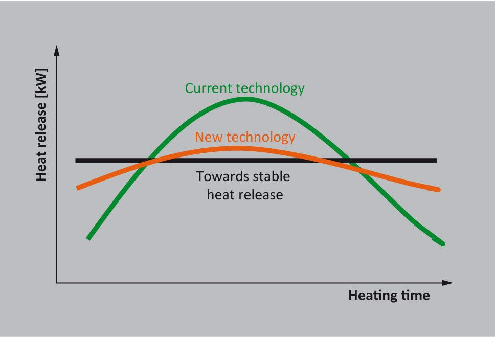 Hence, low load wood stoves and fireplaces in new buildings demands new technologies and solutions with an increased focus on the combustion process and its control, the combustion quality and optimum design to ensure low emissions and high energy efficiency. To minimize the negative effects of the batch combustion process (compared to a continuous combustion process) of wood logs in wood stoves and fireplaces, especially if low load and long burning time is the aim, a more stable heat generation and heat release is needed.