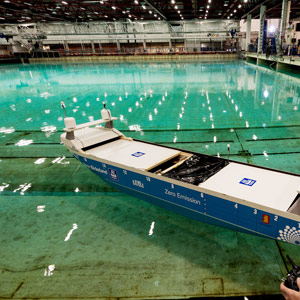 I SINTEF har vi bidratt med modellforsøk av skipet for å se på fart og ytelse i ulike typer bølgeforhold.