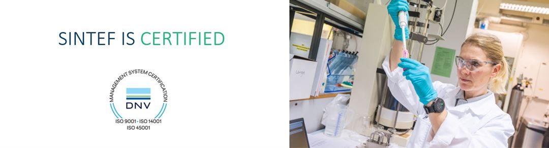 - SINTEF is certified in accordance with ISO 9001:2015, ISO 14001:2015 and OHSAS 18001:2007 standards.