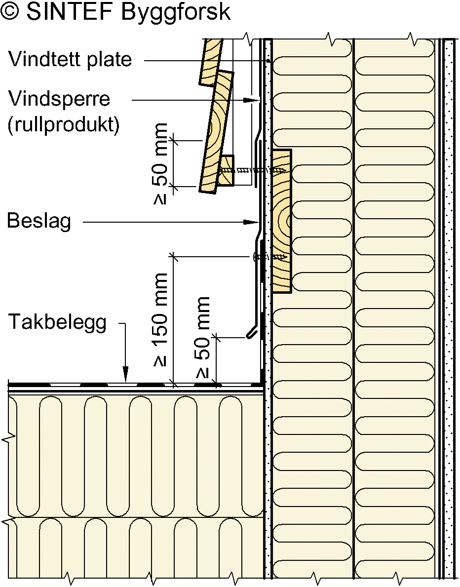 Da er det enklere og teknisk sett bedre å legge en separat, ekstra vindsperreduk utenpå den vindsperreplaten som allerede er det, og sørge for å avslutte den ned utenpå beslaget, slik det er vist i figur 1.