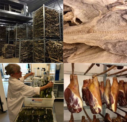 Tørrfisklagring - I prosjektet skal man lage retningslinjer for optimalt tidspunkt for inntak av tørrfisk og for betingelsene under etter-tørking og lagring av tørrfisk for hver enkelt lagertype (kjølelager, klimalager, samt tradisjonelle lager bygd av tre, av betong, samt av stål).
