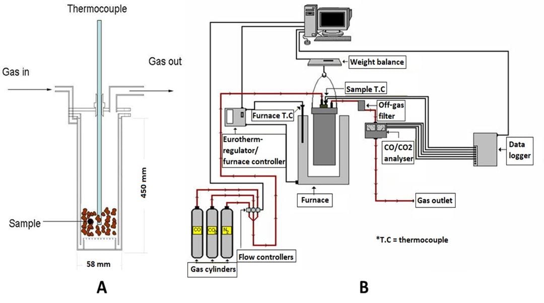 The DisVaDri furnace is a medium to large scale thermogravimetric furnace that is routinely used to analyse the reaction rate of both ores and carbon reductants. The size of the furnace makes it unique as it can handle up sample sizes up to 300 grams and particle sizes up to 15 mm. under a variety of gas atmospheres with CO, CO2, CH4 and H2 off gas analysis available.