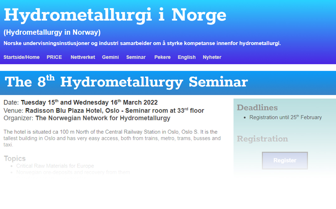 The 8th Hydrometallurgy Seminar