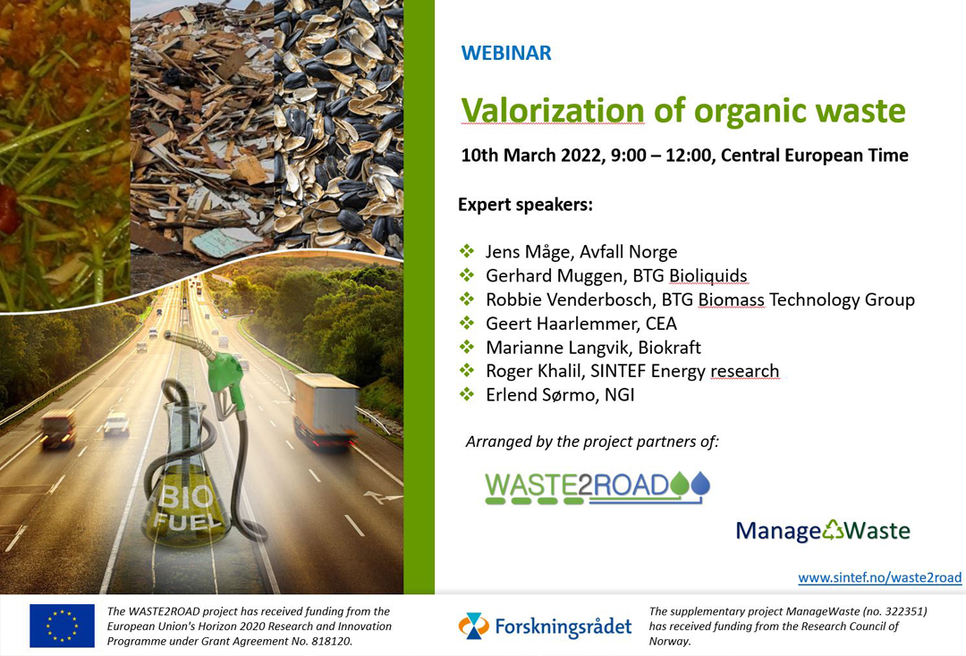 This webinar aims to present technologies at different levels of technical development for valorization of organic waste, featuring expert speakers from both academia and industry.