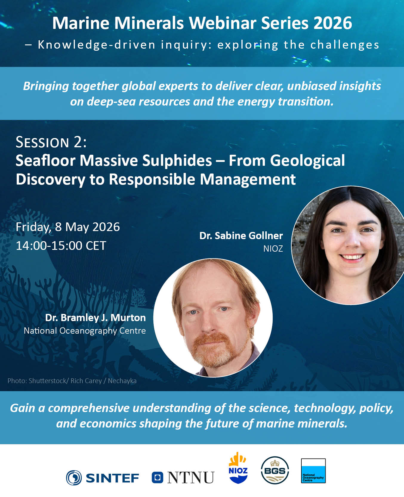 Seafloor massive sulphide (SMS) deposits represent one of the most promising yet complex frontiers in marine mineral exploration. In this session, we will explore SMS—from the geological processes that form these deposits to the innovative methods required to extract them, and finally, to the strategies necessary for environmental impact and management.