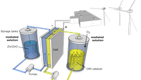 Flow batteries are promising candidates to address the needs of a grid-scale energy storage system for intermittent renewable energies because of the decoupling of power and energy. Flow batteries are a type of energy storage system that operate based on the principle of chemical reactions involving the exchange of electrons between two electrolytes, one oxidized and the other reduced, separated by an ion-exchange membrane.