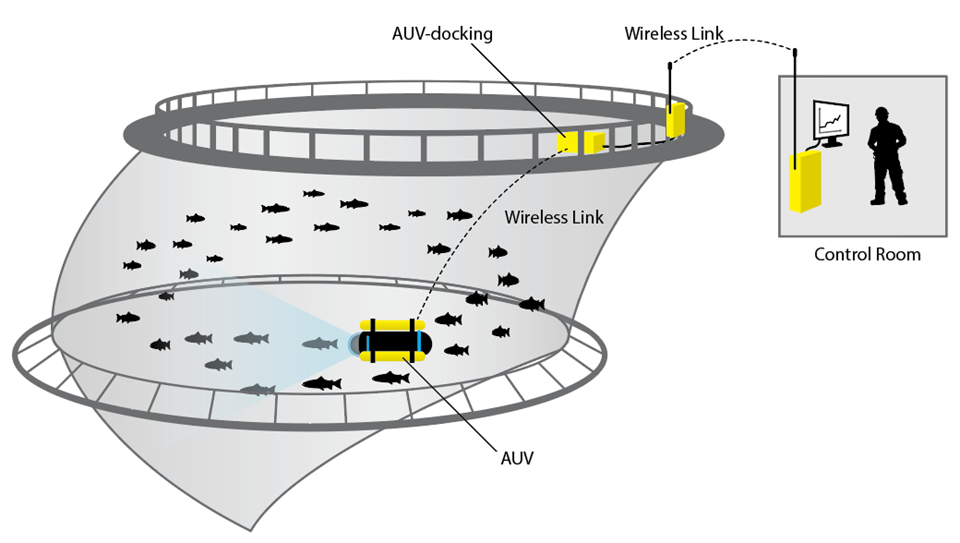 The main idea for the project is to use autonomous and non-tethered vehicles as a carrier of sensor systems for data acquisition, where the data are transferred from sea-based fish cages to a centralized land base.