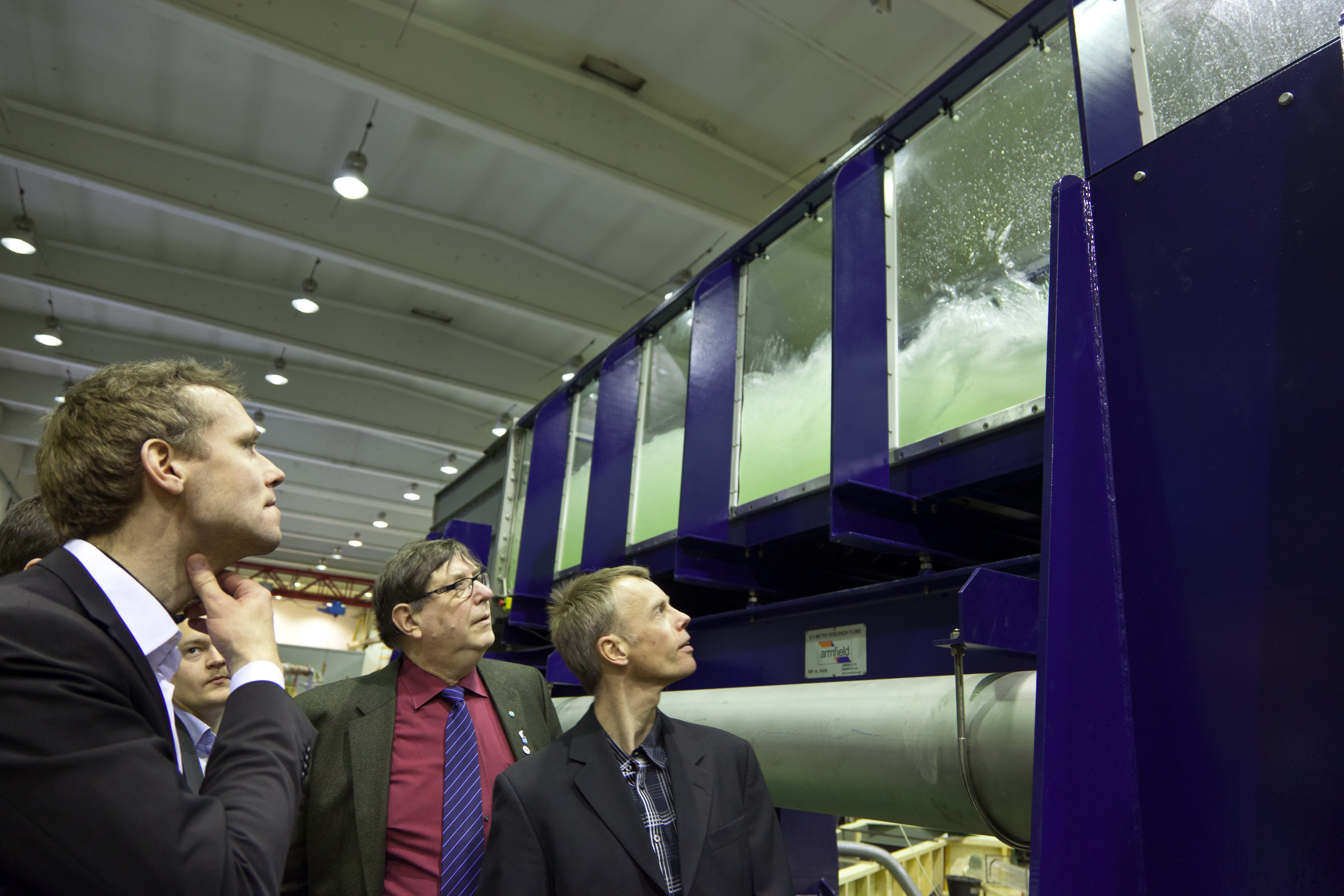 Ola Borten Moe followed the briefing he was given about the experimental flume with close interest. The CEDREN staff have already baptised it “the Ola Flume”.