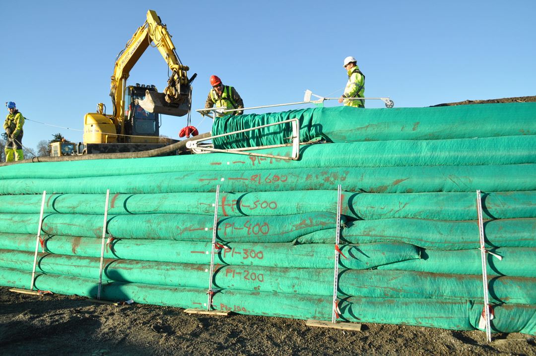 SINTEF has been responsible for developing the technical solution and the construction method used. So far the method has been tested at two localities. At Saint-Gobain Weber’s factory property in Fredrikstad, an embankment was first built in the form of a 2.5-metre high pilot wall to test the principle and construction process. Later, an almost five-metre high test wall was built at Weber’s factory property in Rælingen, where erosion and surface slips on sloping ground were causing problems for the operation of the plant.