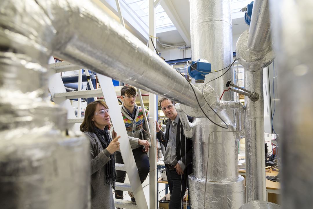 | Core participants in the “Cold CO2 Capture” project discuss their results. From the left; chief scientist Petter Nekså, research scientist Kristin Jordal and David Berstad, MSc, all of SINTEF Energy Research. Photo: SINTEF / Thor Nielsen |