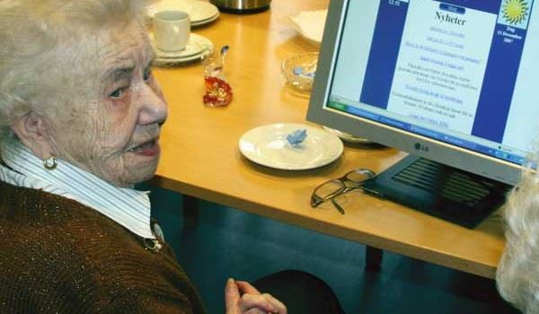 What is being tested in Norway today is a simple communication system based on a computer screen, aimed at elderly people who live at home but whose memory is failing. No keyboard is needed, only a touch on the screen, which displays the sun and the moon to indicate whether it is day or night, while a large clock-face shows the time.