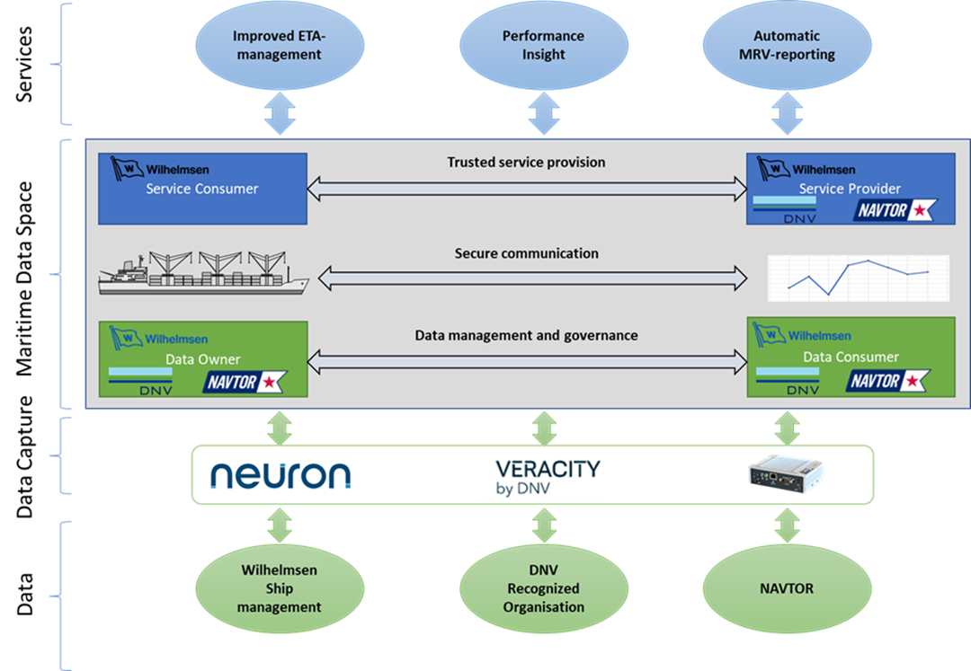 NAVTOR, Veracity by DNV, Neuron Solution and SINTEF have together with Wilhelmsen Ship Management developed an open maritime data exchange ecosystem for secure sharing of ship related data among trusted stakeholders. The successful project paves way for rapid development of new data analysis services while securing proper governance of the data.