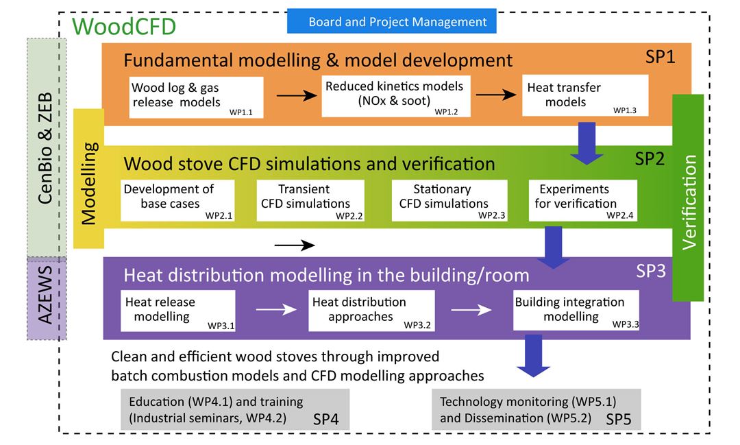 The major objectives of SP2 are to develop a numerical tool that is suitable to study concept improvements for wood stoves and to recommend new improved concepts with respect to high energy efficiency and low emissions based on simulation results.
