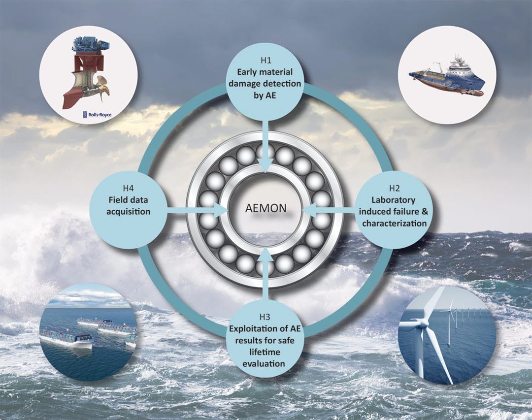 The AEMON project will therefore develop a novel condition monitoring system by the application of Acoustic Emission for detection of damage prior to what can be detected by vibration monitoring. AEMON will also seek to combine vibration and AE signals to map the whole degradation curve and use this to estimate the remaining useful lifetime of a component.