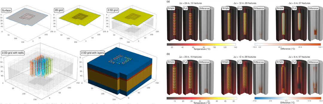- Specification and construction of numerical models of fractured, geothermal reservoirs, and definition of combined systems including multiple reservoirs, wells, heat sources, consumers and losses.
