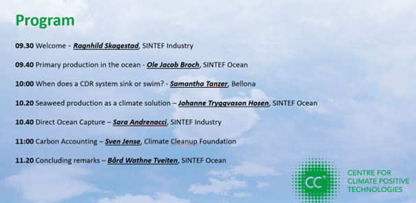 CC+ arranged a webinar regarding Ocean-based capture solutions the 3rd of May 2023. The recording of the webinar is available in the next three months here.