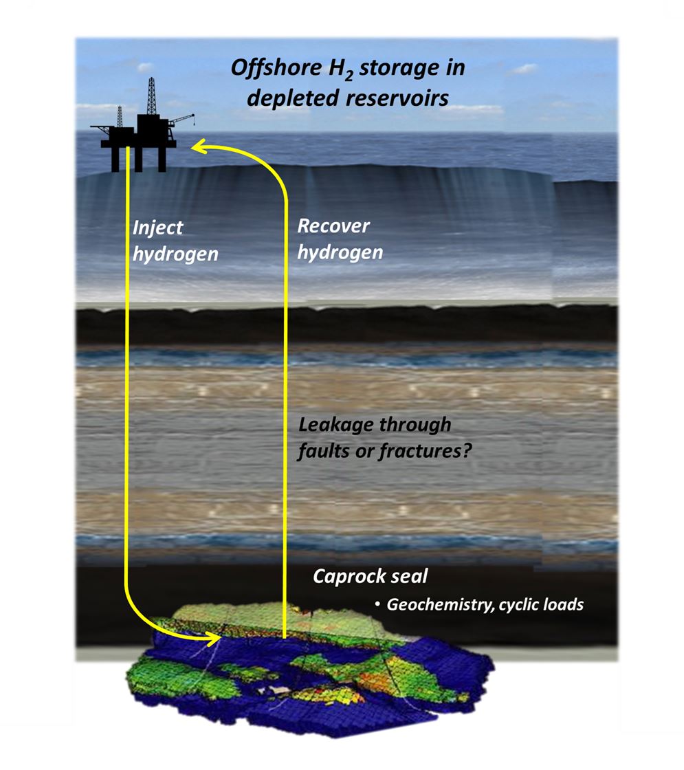 In the present project HyStorm we investigate whether energy, in the form of hydrogen (H2), can be stored safely underground in abandoned oil and gas reservoirs. These are widely available in Norway, and their use for H2 storage can open for a renewable offshore future for the country by powering petroleum platforms. The project involves a national team of world-renowned experts in the fields of geochemistry (chemistry applied to mineral reactions in rocks), geomechanics (solid mechanics applied to porous rocks), materials science and reservoir flow modelling (study of the pore fluid flow in underground rocks) from SINTEF, NORCE and the University of Oslo.
