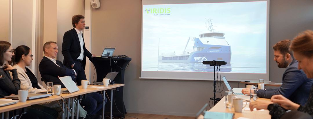 Karl Fredrik presented Viridis’ development of the world’s first ammonia-powered short-sea bulk vessel. Viridis’ strategy is to develop, build, and operate their own zero-carbon bulk carriers. The work started in 2020, and now at the end of 2023, the main ship design has been completed, and construction can start. The vessels will bunker refrigerated ammonia from the floating terminals developed under the AFBN.