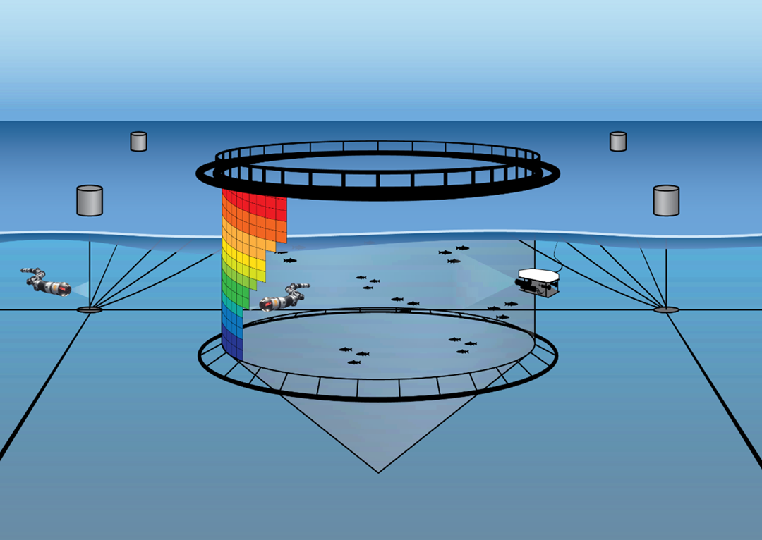 - Develop methods for safe and cognizant motion planning for online operations that enable collision-free navigation in dynamic fish farm environments, without impacting the fish.