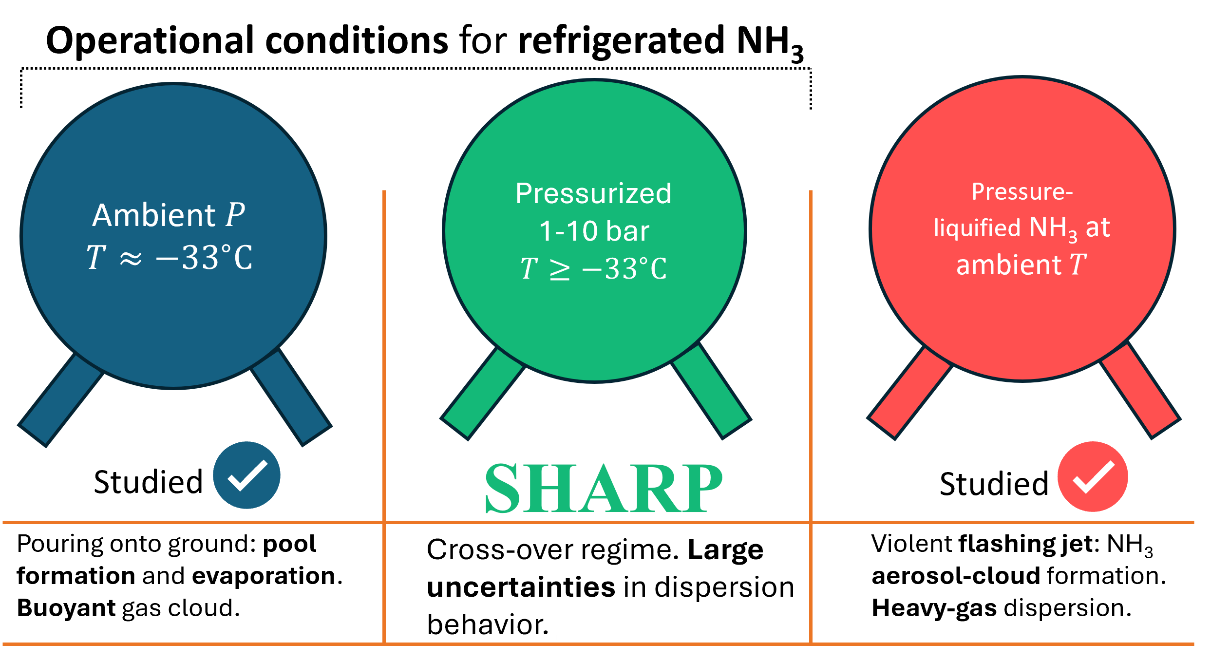 The project focuses on the release of refrigerated pressurised liquid ammonia, with attention to aerosol formation, rainout, water-based mitigation systems and atmospheric dispersion. Release experiments will be performed by the University of South-Eastern Norway (USN) and water-based mitigation experiments will be conducted in RISE Fire Research’s lab facilities. The modelling work is led by SINTEF, who by using the data from the experimental campaigns will both validate the developed leakage and release models, and benchmark existing models.
