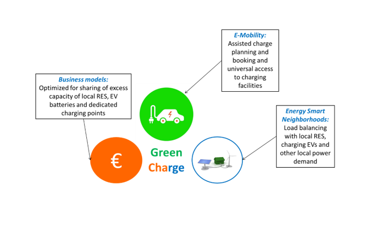 The technology will coordinate the power demand of charging with other local demand and availability of local RES, leveraging load flexibility and storage capacity of local stationary batteries and parked EVs. Furthermore, it will provide user friendly charge planning, booking and billing services for EV users. This will reduce the need for grid investments to establish new charging stations, remove range and charge anxiety and enable the sharing of already existing dedicated charging facilities for EV fleets.