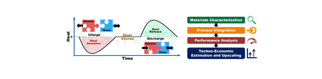 Through lab scale characterisation of selected materials, we aim to overcome the crucial next step towards industrial use by performance analysis of candidate materials under relevant conditions at lab scale and study the path for further upscaling and integration. One advantage of TCES is the potential for economic upscaling, as storage tanks and recirculation rate of the material can be easily upscaled to enable an improved heat storage capacity without big modifications in the reactor (the costly part).