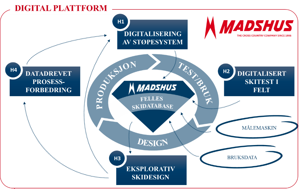 Madshus is extending a digital platform where ski design can be continuously developed based on a dynamic analysis of the information gathered from raw materials, production process, field testing and feedback from the athletes. The feedback will result in even better product by digitizing, analyzing, and linking the information to related parameters in the design and production process.
