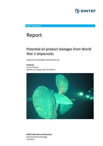 The water accommodated fractions (WAFs) of oils from the British sloop HMS "Bittern", the British carrier tanker RFA "Boardale", the German destroyer "Erich Giese", and the German cargo ship MS "Nordvard" have been studied with special emphasis on chemistry and taxicity. A limited study of the...