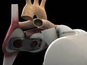 This figure shows the cardiac valves and an outline of the ventricles, membranes and cardiac valves. The three sensors are located in each ventricle chamber and in the outlet to the aorta. Ill.:...