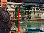 Founder Trond Lysklætt in front of the submersible cage in the Ocean Laboratory. Photo: Henriette Louise Krogness, SINTEF Ocean Standard No question where the founders plan to test their...