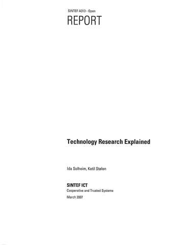 ...understanding of technology research and the way to conduct it. The report pinpoints similarities and dissimilarities between classical research and technology research, and between technology research and action research. Hypotheses, predictions and testing are systematized and illustrated by examples. The...