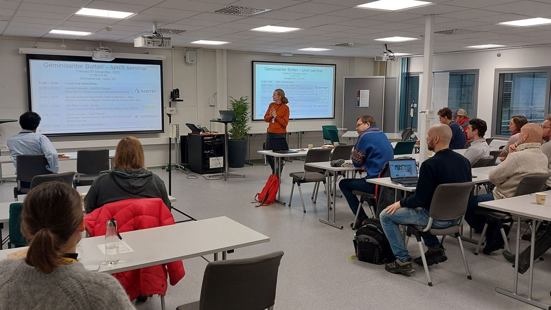 Jonatan Klemets from SINTEF Energy started by giving and overview of the work done in the project BaSS – Electrochemical battery for voltage support in distribution grid, where one of SINTEFs tasks have been simulation of different scenario for implementation of batteries in the electric grid. Technoeconomic calculations have also been done to evaluate both long- and short-term profitability. Solveig Askevold Ulsund and Siri Førsund Bjerland from Aneo presented Aneo’s battery concepts for zero emission construction sites. Aneo provides portable charging stations which can be used to charge electric vehicles and excavators used on the construction sites. They showed user data and how Aneo works to optimize charging and use based on daily fluctuations in electricity prices.