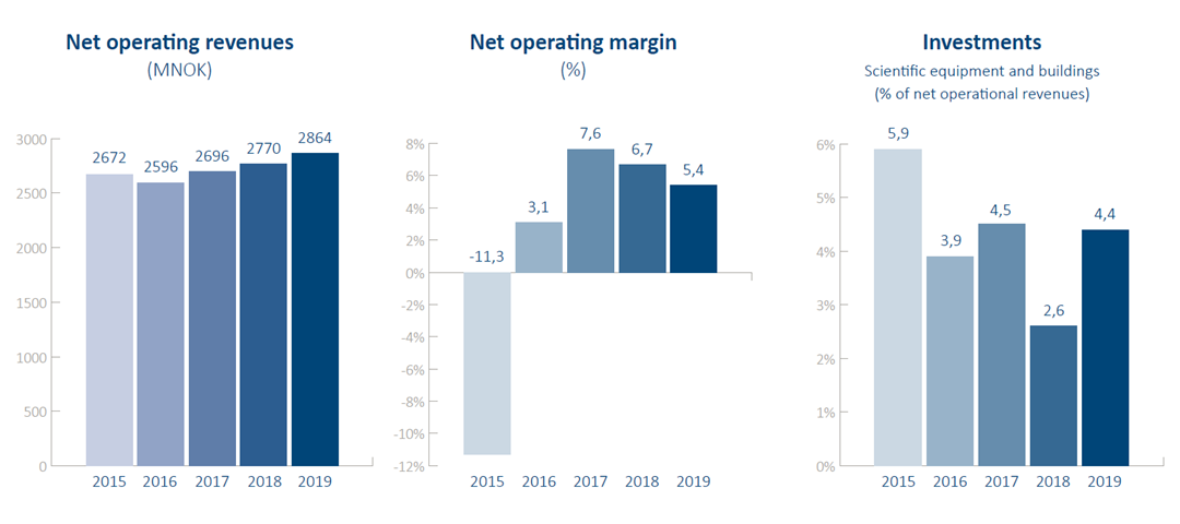 All of which promises well for our future prospects. However, the times we live in are no longer normal, and the global crisis triggered by the coronavirus has created a virtual state of emergency across large parts of the world. As yet, we do not know what the consequences of this will be, and we may be facing very difficult months ahead. However, one thing is certain. Research and innovation will be even more crucial to the development and adaptivity of the business community and wider society when normality is eventually restored. This work cannot be brought to a halt by a crisis. SINTEF’s ambition is that our expertise and research shall make an active contribution during this difficult situation. However, now in April, it is very uncertain how the coronavirus crisis will impact on SINTEF’s activities and results for 2020 as a whole.