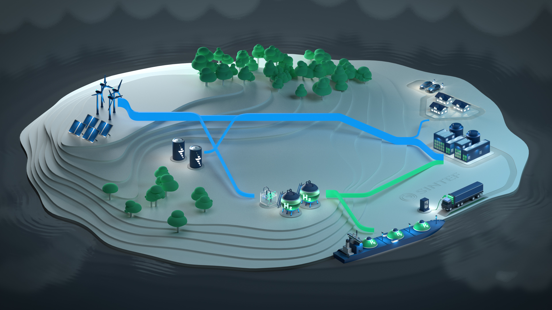 Our focus is to develop, demonstrate and implement energy technologies and systems based on hydrogen technology, batteries and renewable energy by the use of: