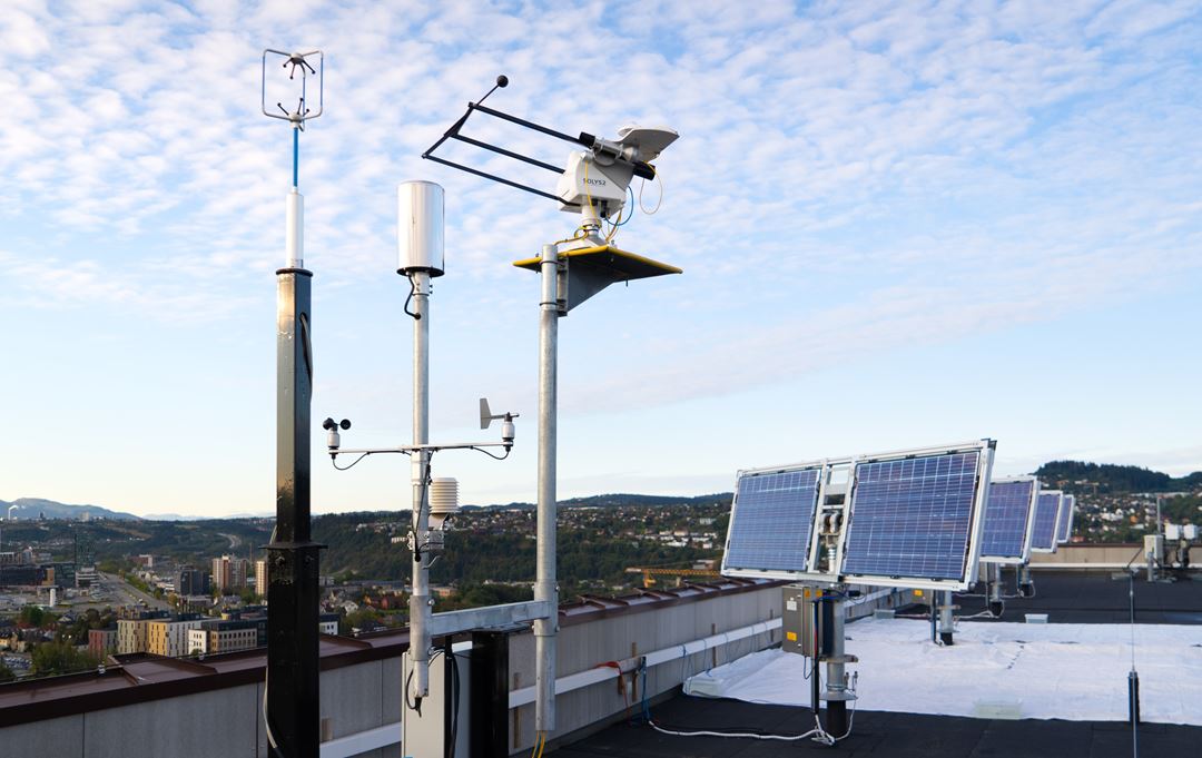 Vi har avansert måleutstyr for innstråling ved værstasjonen på laboratoriet. Her blir det målt blant annet direkte normal innstråling, diffus horisontal innstråling, global horisontal innstråling, vindhastighet og omgivelsestemperatur.