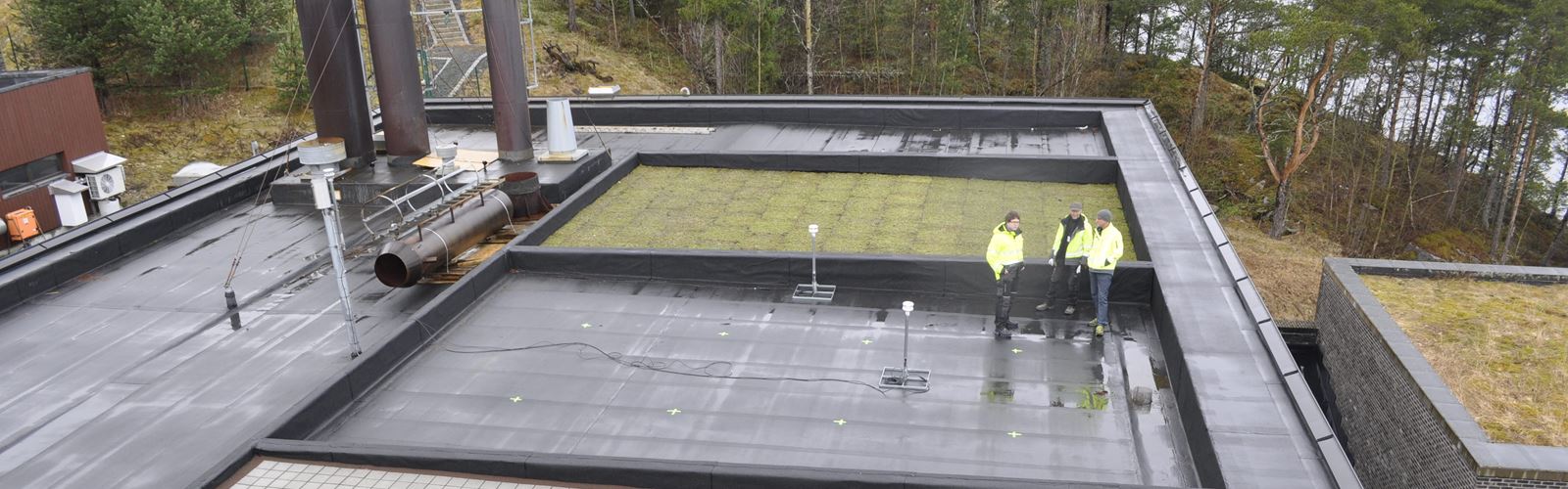 Forsøksfeltet er et takareal med tre prøvefelt på 90 kvm hver. Langs ytterkantene av taket er det bygget opp vegger, slik at taket er en isolert enhet og en får full kontroll over hvor mye vann som havner på taket og hvor mye som går ut. Stasjonen kan måle hele spennet fra drypp til ekstremnedbør.