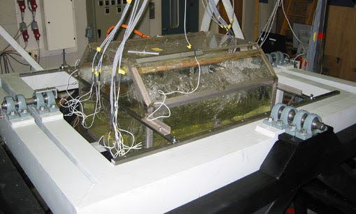 For undersøkelser av væskebelastning i tanker og på spesielle geometrier har SINTEF utviklet et laboratorium for sloshing med to bevegelsesplattformer og en fallrigg for deterministiske vannslag. Bevegelsesplattformene er spesiallaget for å sette i gang skalerte fartøysbevegelser.