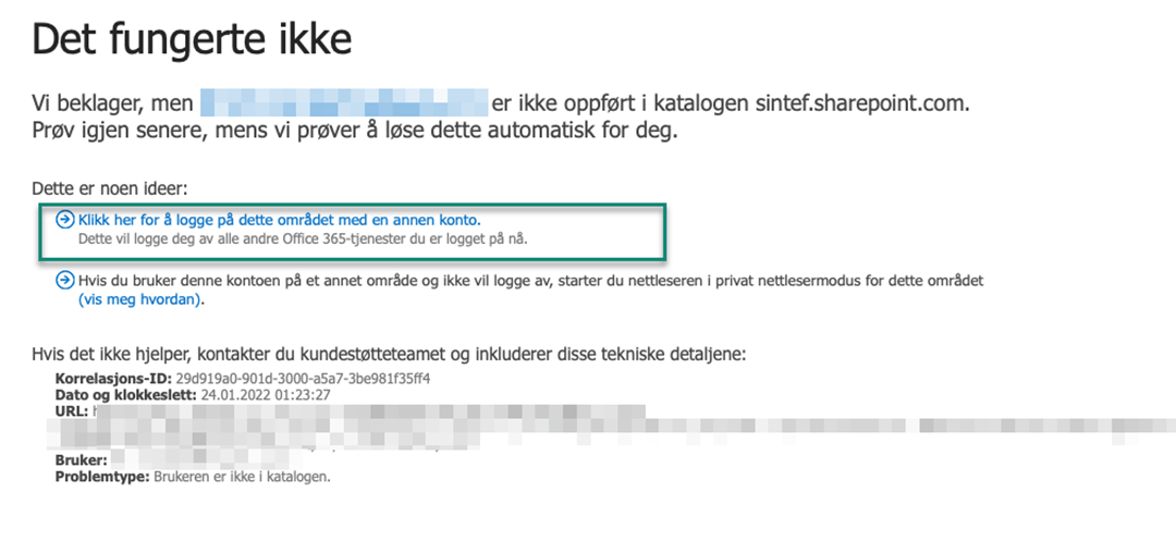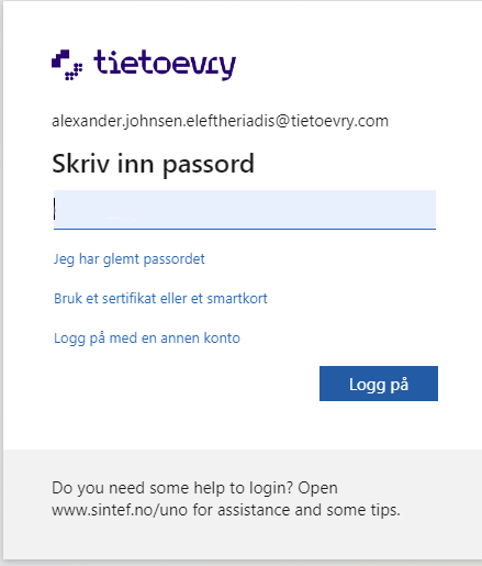1. Logg på Microsoft 365 med e-postadressen du benytter i arbeid hos SINTEF. Etter at du har valgt logg på, blir du bedt om å oppgi mer informasjon.