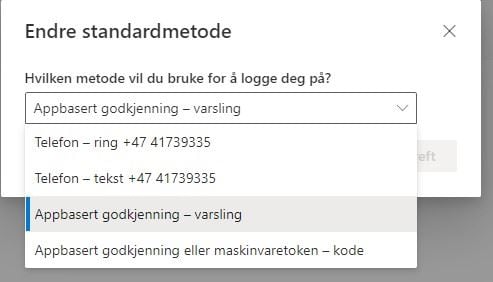 Her kan du velge andre alternativer som passer ditt behov. Her benytter du deg av samme fremgangsmåte som Authenticator-valget: du følger altså informasjonen som blir gitt i dialogboksene.