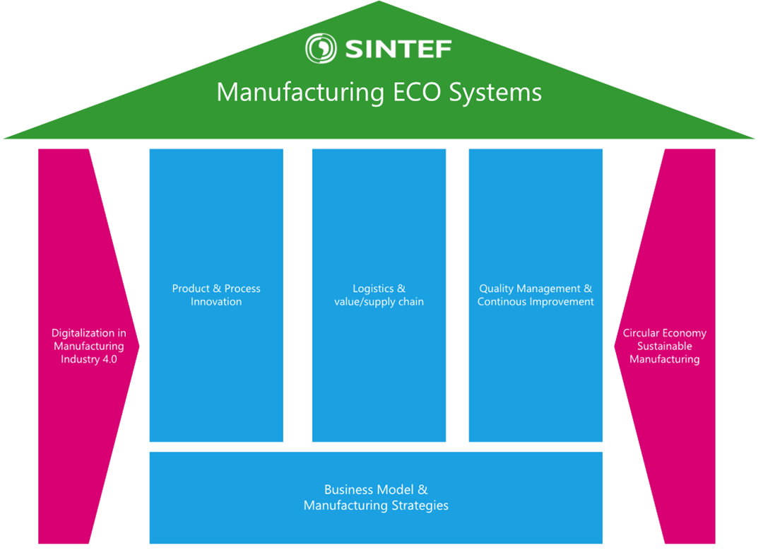 Vareproduserende bedrifter må nå forholde seg til store endringer med digitalisering eller implementering av Industri 4.0, og økt fokus på bærekraftig produksjon og hvordan oppnå FNs bærekraftsmål. Vi har spisskompetanse på Industri 4.0 gjennom deltagelse i store forskningsprosjekter i EU og Norge og ledelse EU sin plattform for zero defect manufacturing.