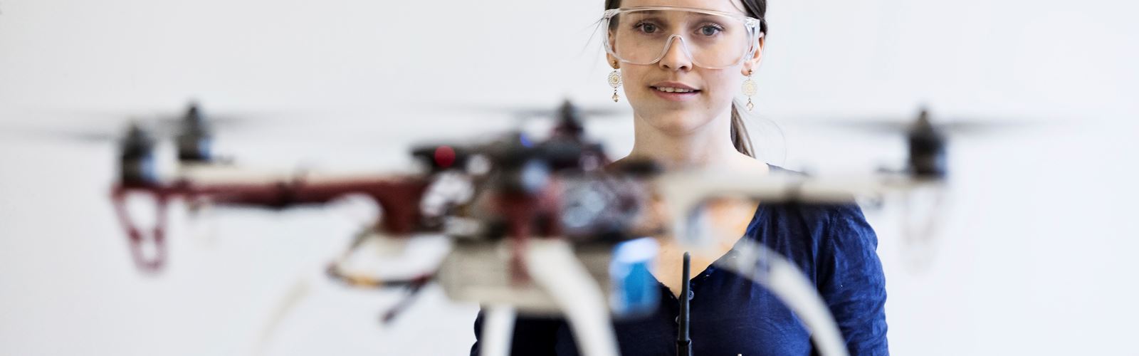 Hovedbilde på årsrapporten er Marianne Bakken med drone. Fra prosjektet Mobile and autonomous sensor systems - MAsens. (Foto: Werner Juvik)