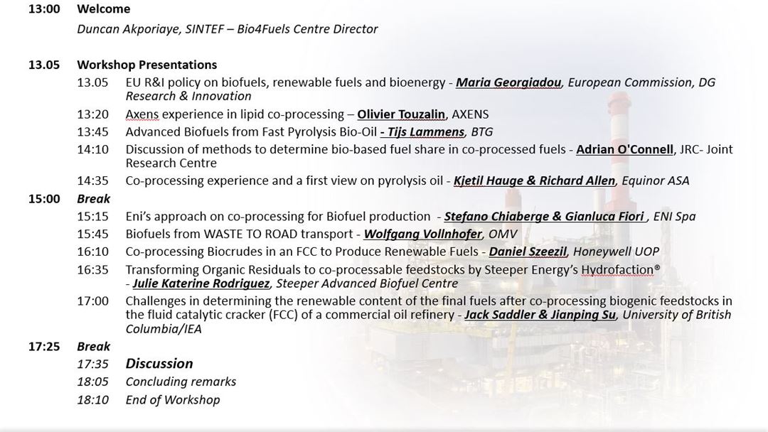 Virtual Workshop: Co-Processing as route to deployment of advanced biofuels production 14th April 2021 (Presentations)