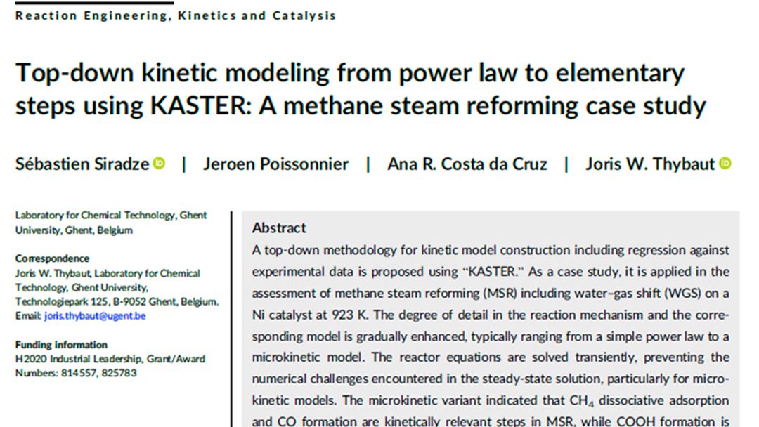 - Siradze S, Poissonnier J, Costa da Cruz AR, Thybaut JW. Top-down kinetic modeling from power law to elementary steps using KASTER: A methane steam reforming case study. Journal of AIChE - 28 May 2023. https://doi.org/10.1002/aic.18151