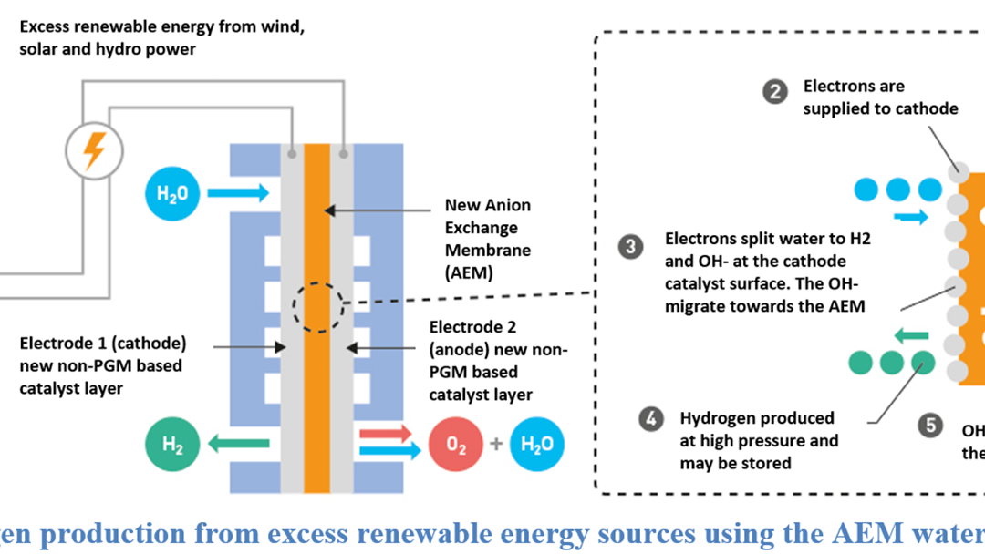 - Single cell 25 cm2 active area AEM performance of <1.85 V at 1 A cm-2 at <50 oC in < 1 M KOH