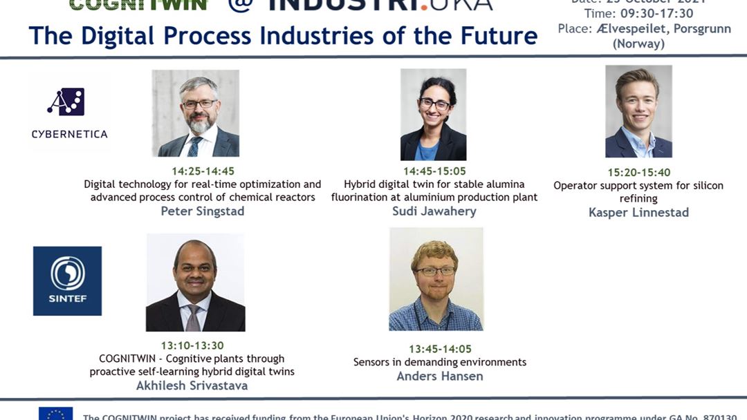 On 25th October 2021, the COGNITWIN project participated in "The Digital Process Industries of the Future" during Industri Uka in Porsgrunn (Norway) and contributed with 5 presentations.