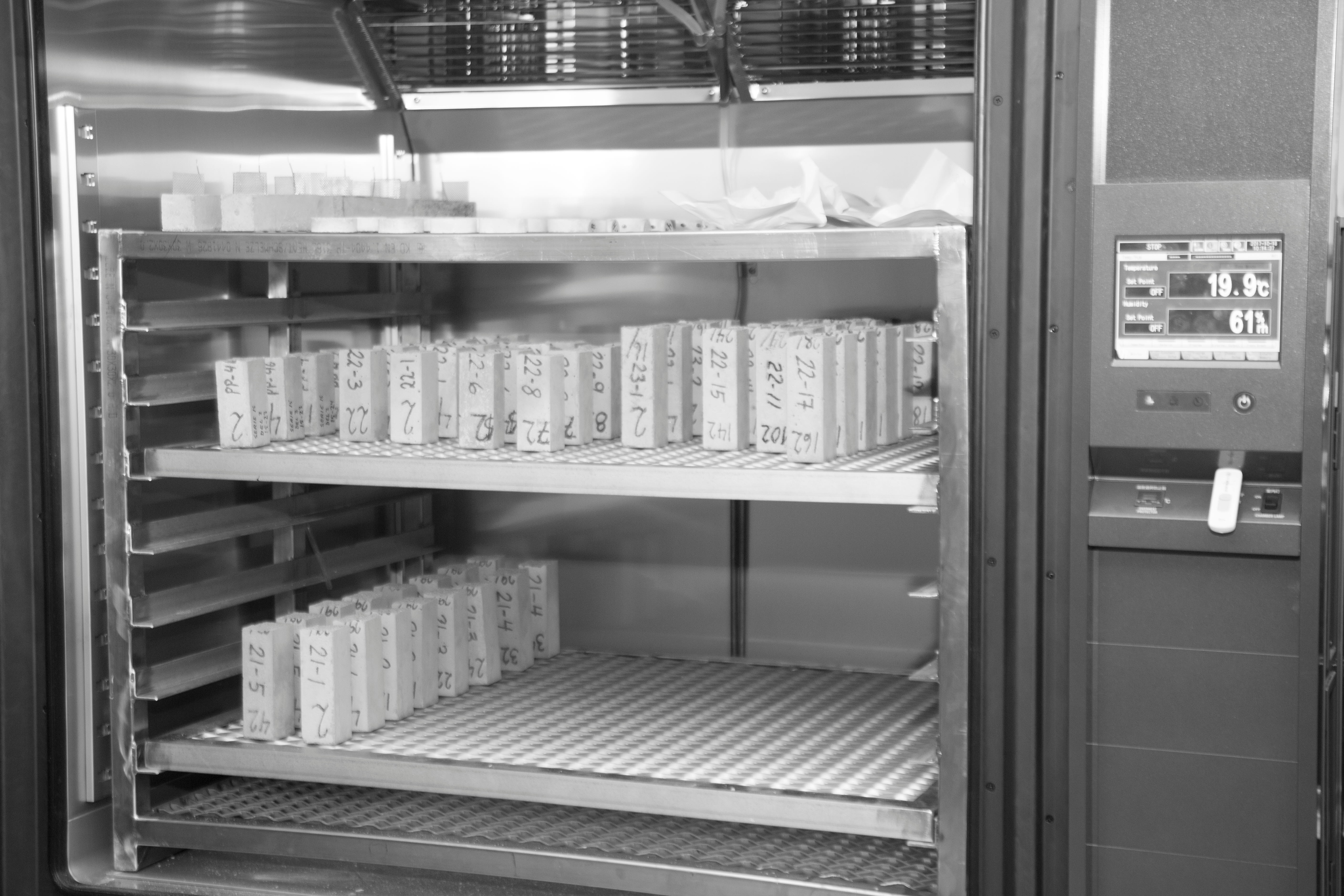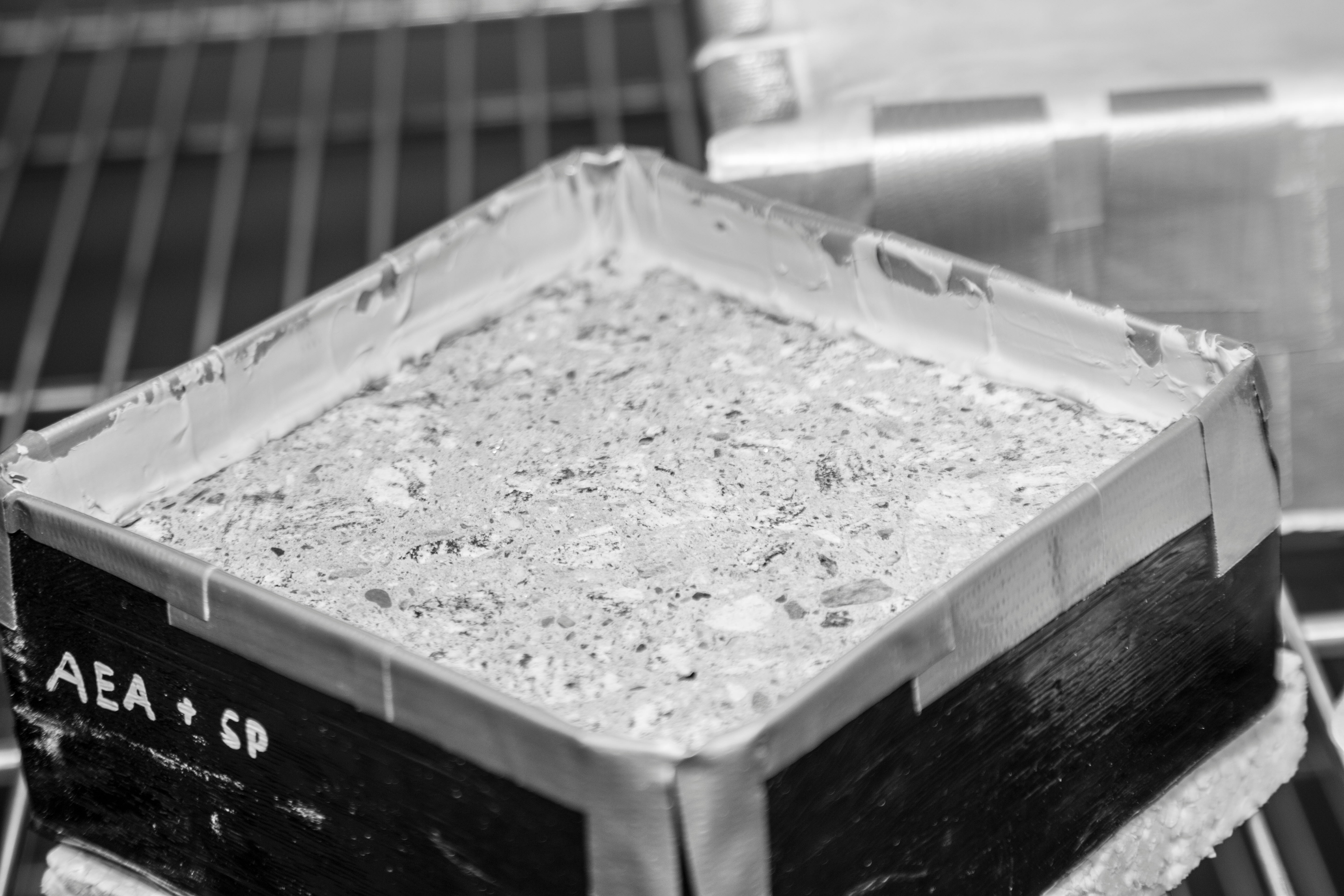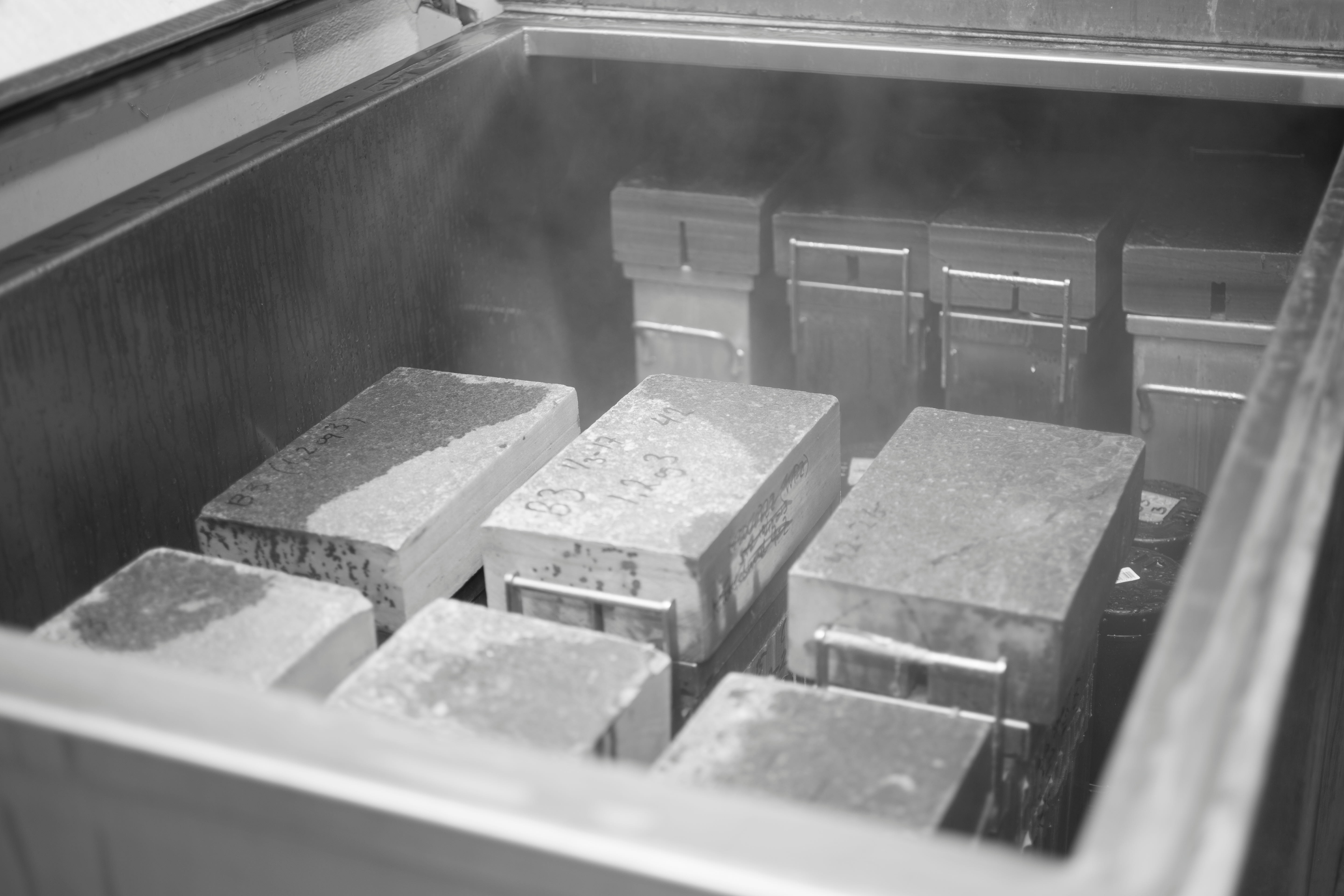 The frost resistance is determined by the slab method according to CEN/TS 12390-9. This test method can be applied on drilled cores from structures or concrete products or on cast specimens for documentation of the frost resistance for different concrete compositions.