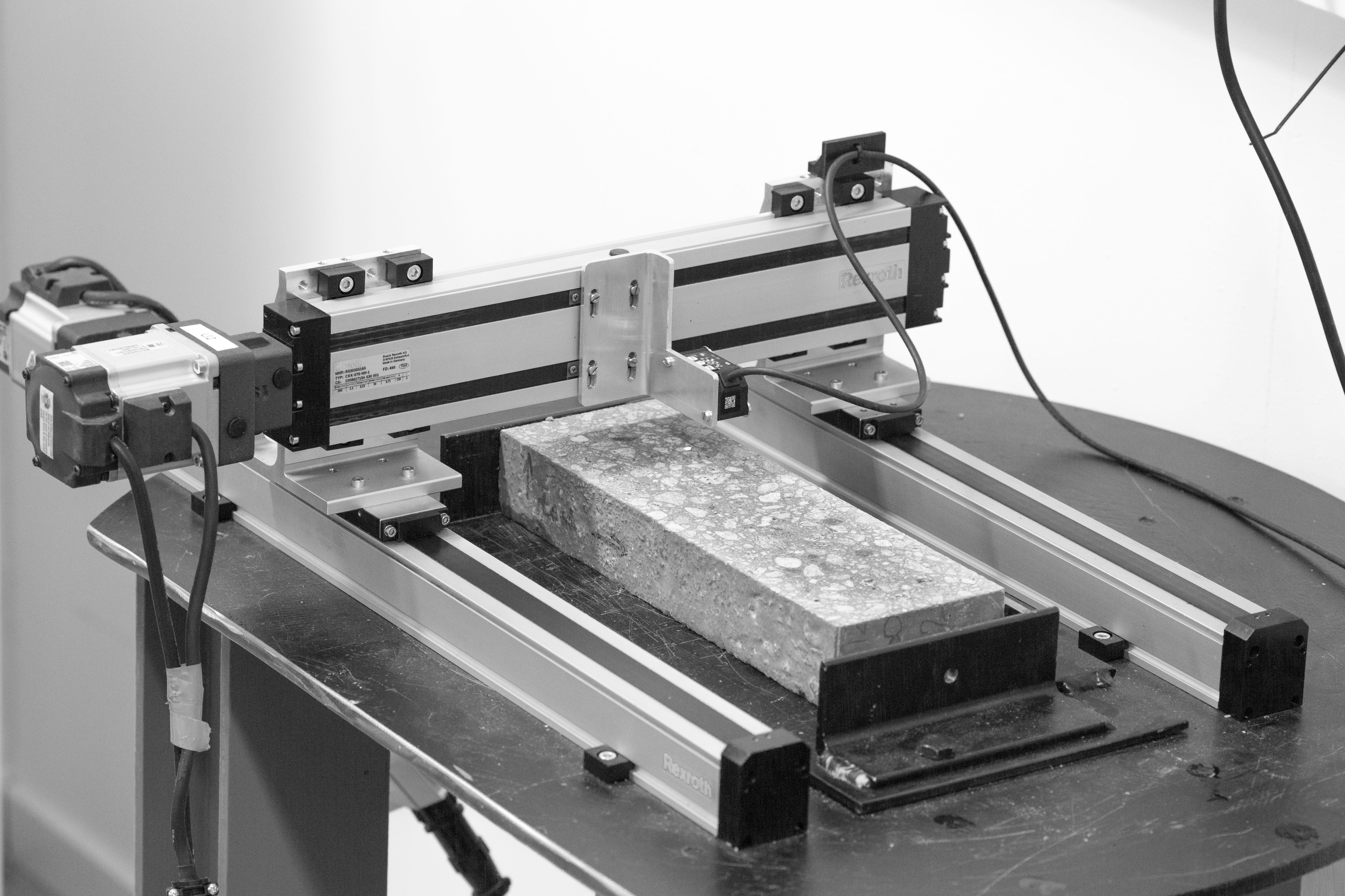 On different stages of the test, we scan the concrete surface with laser scanner. The concrete surface scans allow us to estimate average abrasion depth.