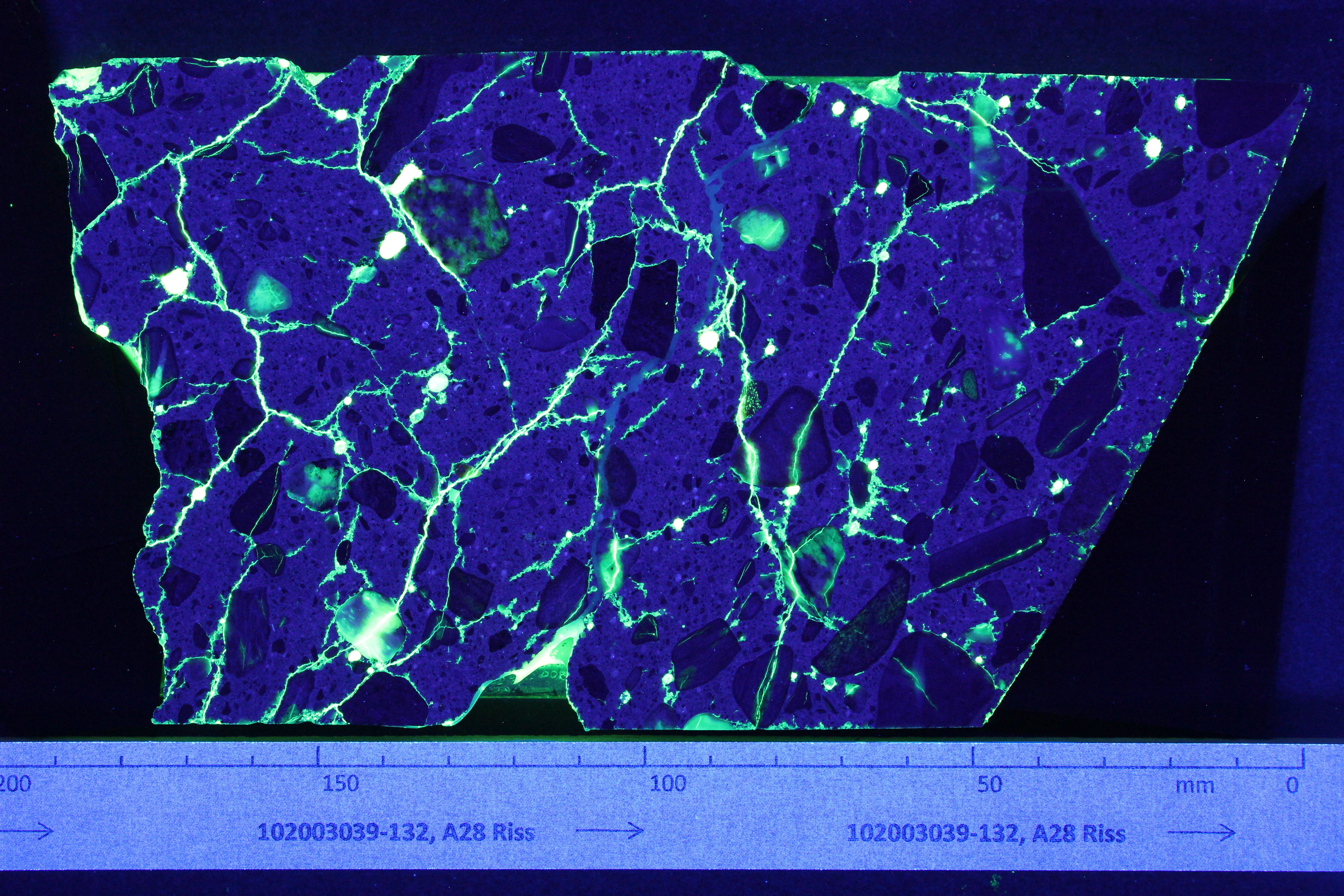 In this laboratory we perform microstructural analysis of concrete by using plane polished sections and thin sections. We can detect irregularities and damage such as e.g.: