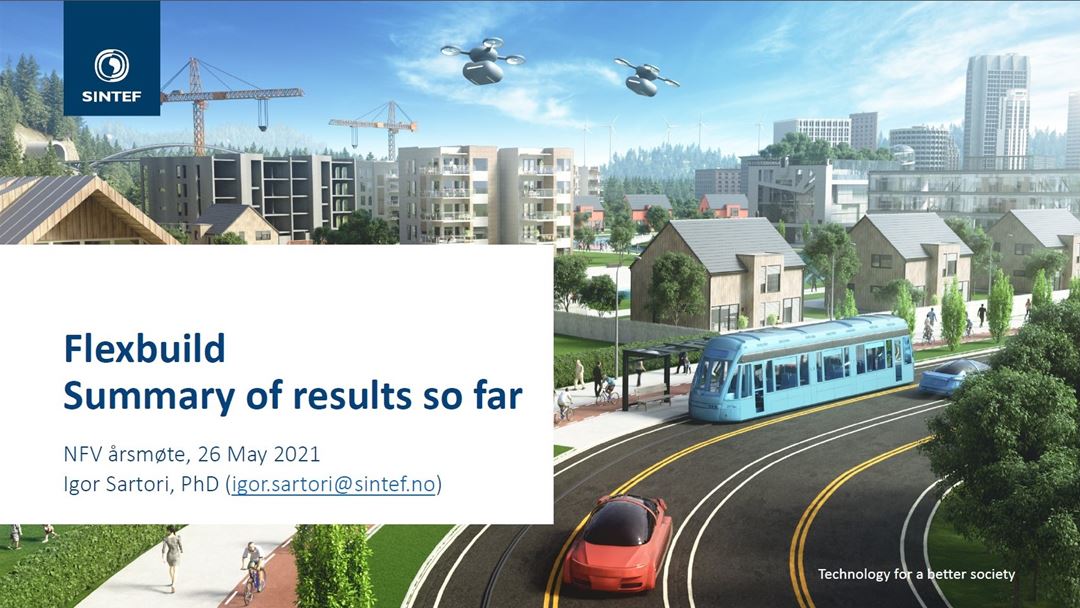 Igor Sartori v/SINTEF Community presenterte de foreløpige resultater fra FlexBuild prosjektet på årsmøtet til Norsk Fjernvarme.